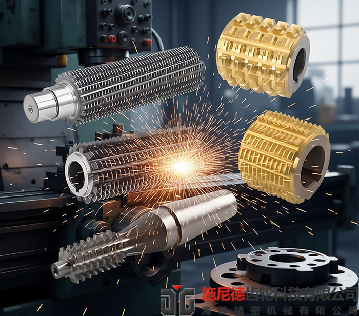 使用专用对刀规工具进行校准,将对刀规置于滚刀齿槽中,调整滚刀轴向位置,使对刀规与基准面接触一致。该方法精度高、重复性好,适用于高精度齿轮加工场景。